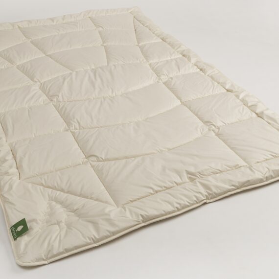 Die Schafschurwolle hat eine ausgleichende Funktion. Sie kann 30% ihrers Gewichts an Feuchtigkeit aufnehmen, ohne sich nass anzufühlen und gibt sie an die Umgebung ab. Dieses Unterbett wärmt herrlich in der kalten Jahreszeit. Zusätzlich besteht der Baumwollsatin aus 100 % kbA Baumwolle.