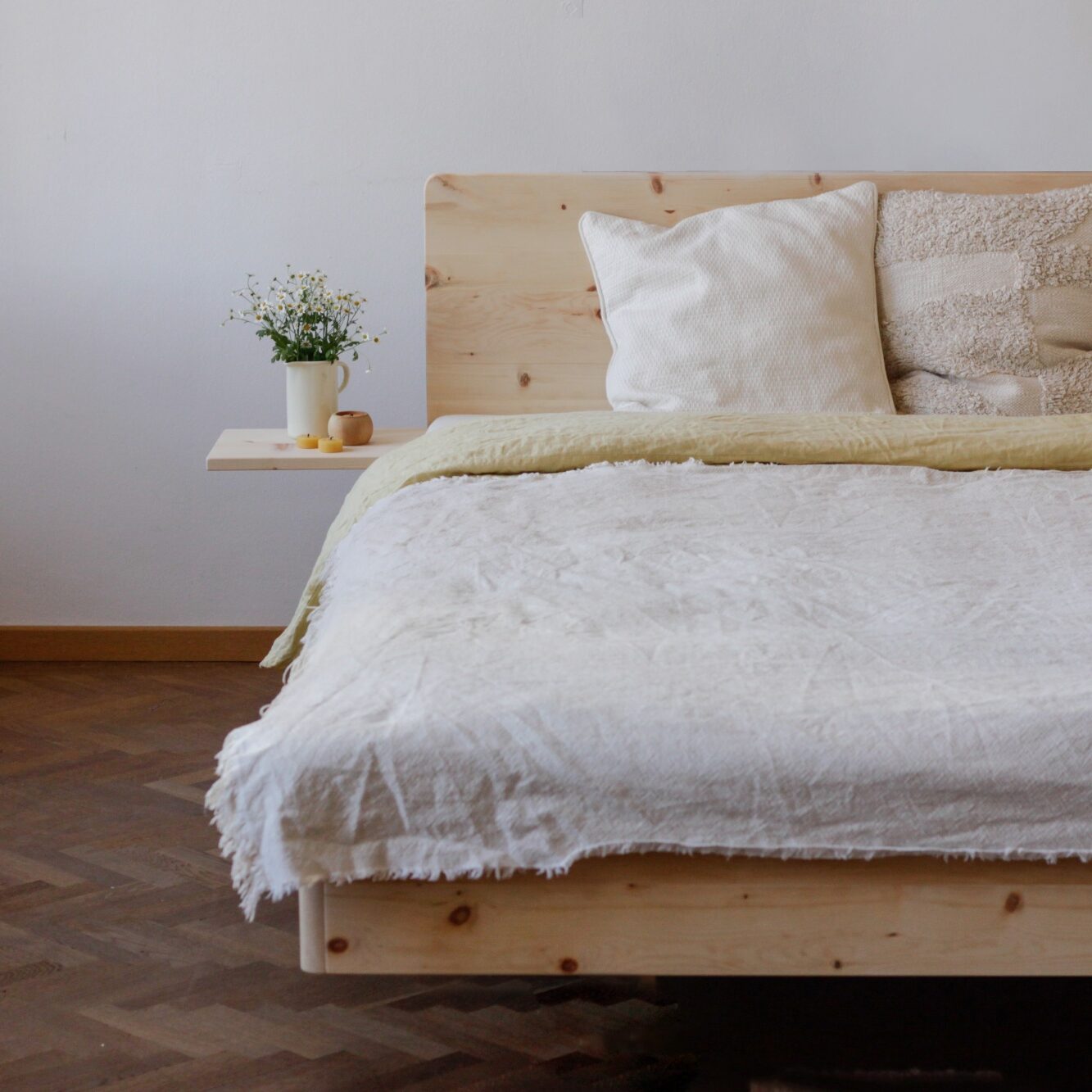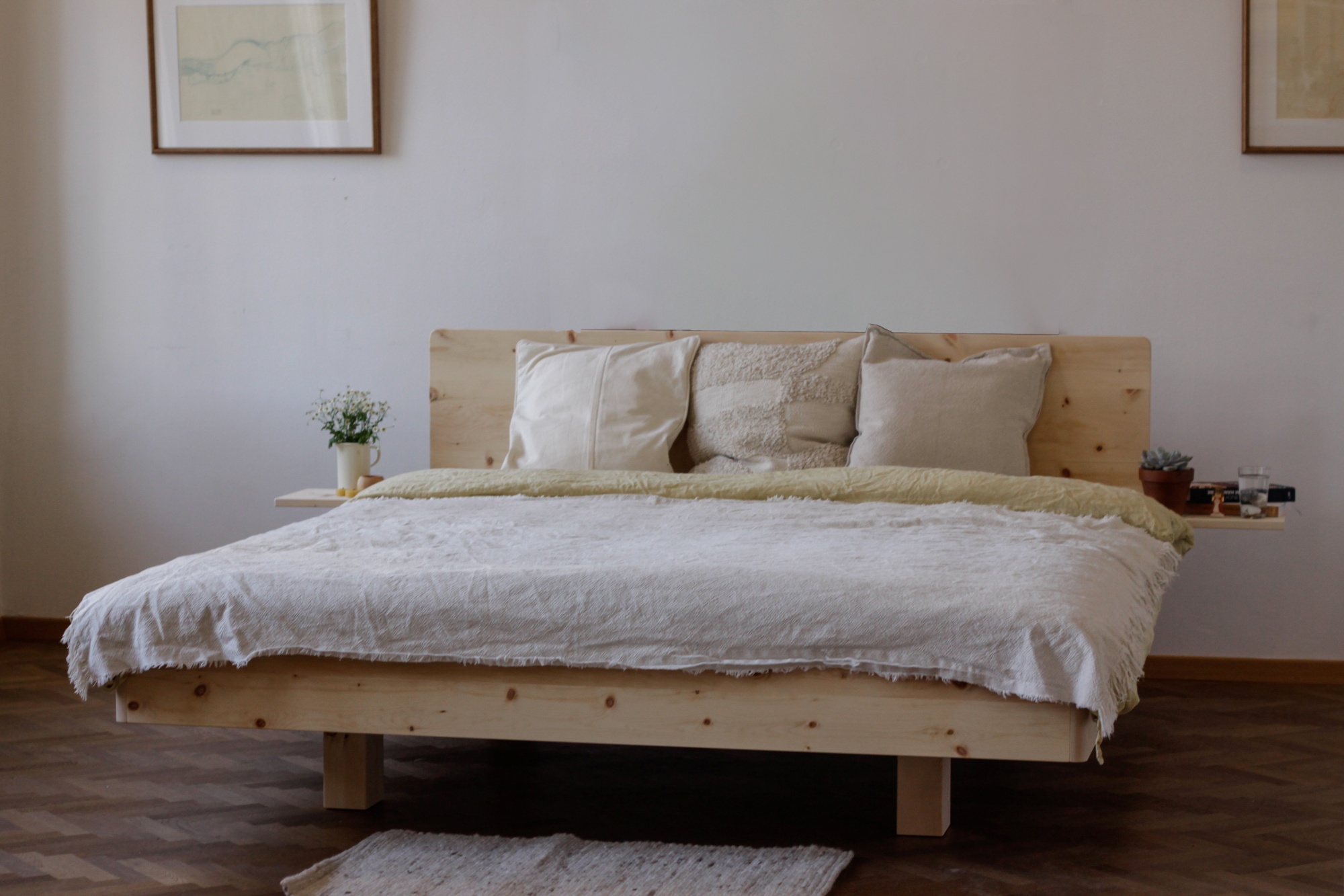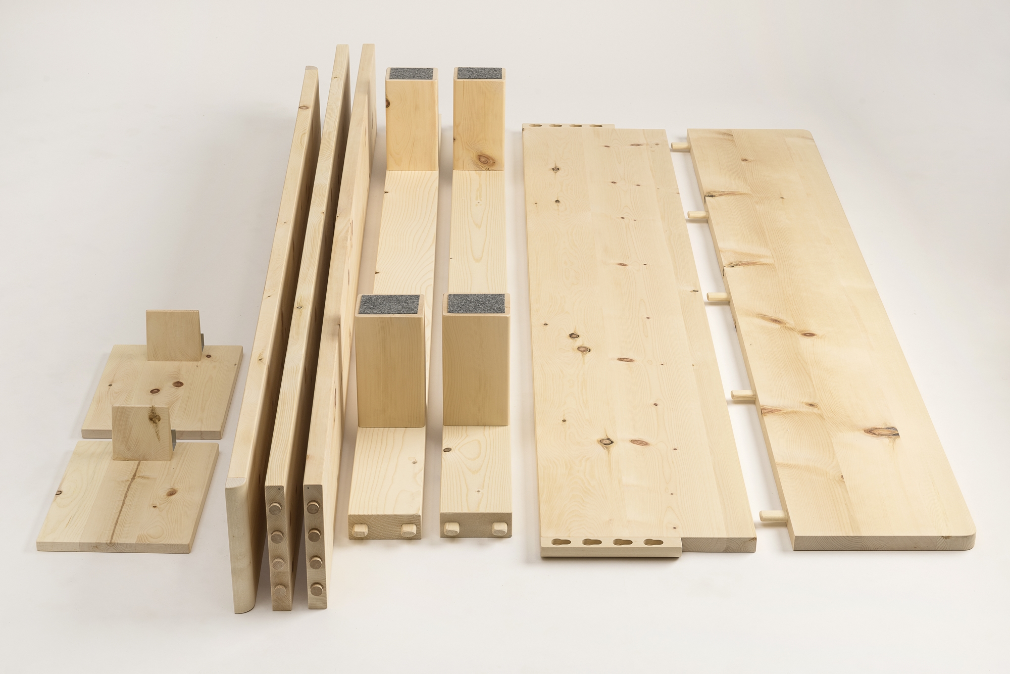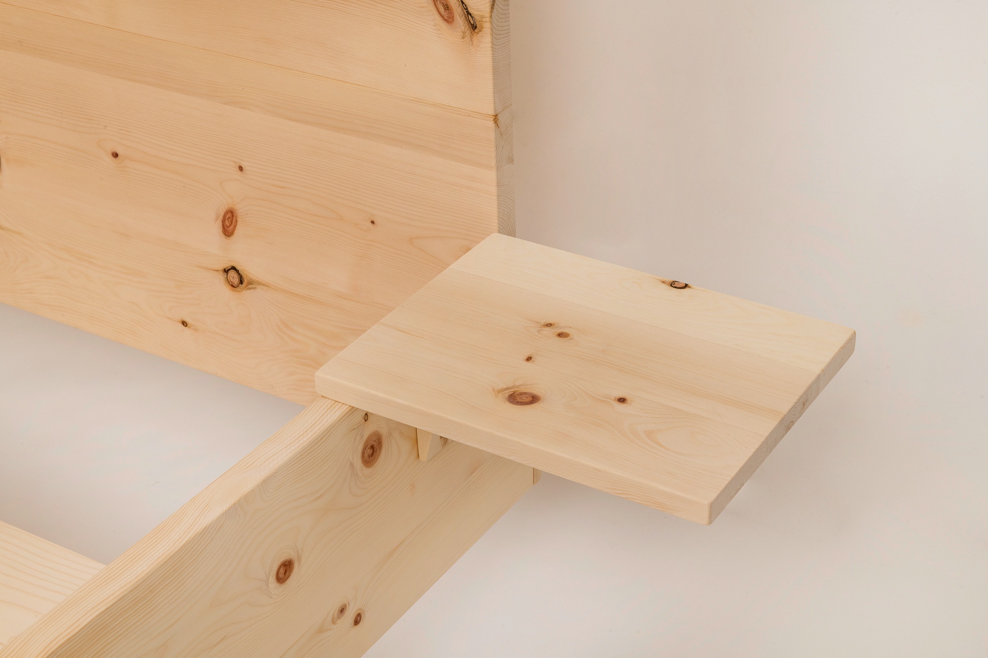 Durch die geraden Linien wirkt es frisch, schlicht und passt auch in kleine Zimmer, ohne überladen zu wirken. Die zwei hängenden Nachttische sind inklusive, sie werden einfach aufgesteckt. Der Bettrahmen wird in der praktischen und vor allem nachhaltigen Transportbox geliefert, die Sie als Regal oder Kiste weiterverwenden können. Die präzise gearbeiteten Steckverbindungen machen den Aufbau kinderleicht.